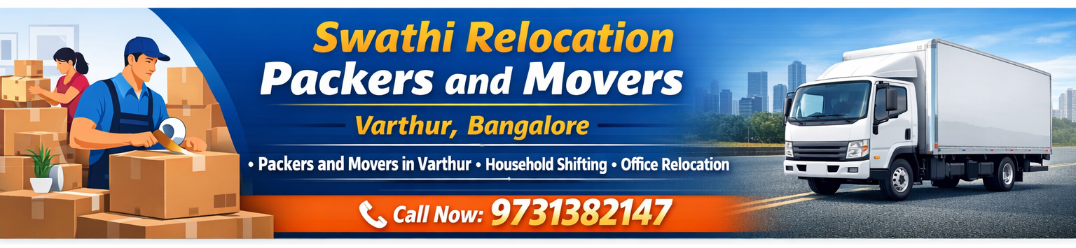 Swathi Packers and Movers in Varthur, Bangalore provides professionally planned relocation services for households and businesses. With strong local knowledge and practical experience, our team ensures every move is handled in a structured and organized manner. As trusted packers and movers in Varthur, we focus on safety, timing, and proper coordination throughout the relocation process.